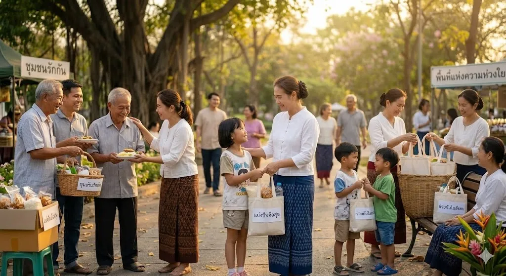 เมื่อการให้ทานกลายเป็นส่วนหนึ่งของวิถีชีวิต ผู้คนในสังคมก็จะมีความเอื้ออาทรและช่วยเหลือกันมากขึ้น สิ่งนี้ช่วยลดความเหลื่อมล้ำและความเดือดร้อนของผู้ที่ขาดโอกาส ทำให้สังคมเกิดความสมดุลและความร่วมมือในการพัฒนาส่วนรวม จึงช่วยสร้างสภาพแวดล้อมที่เต็มไปด้วยความเมตตาและความปรารถนาดีต่อกัน