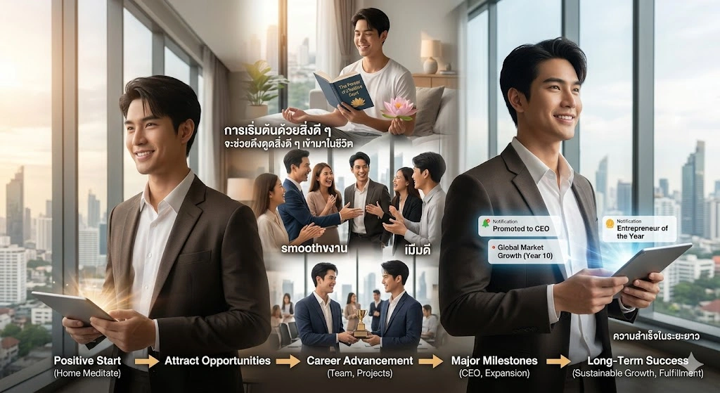 การพูดคำที่เป็นมงคล เช่น คำอวยพร คำให้กำลังใจ หรือคำที่มีความหมายดี เปรียบเสมือนการ “ตั้งต้นพลังบวก” ให้กับตนเองและผู้อื่น คนไทยเชื่อว่าการเริ่มต้นด้วยสิ่งดี ๆ จะช่วยดึงดูดสิ่งดี ๆ เข้ามาในชีวิต ทำให้เกิดความราบรื่น โชคดี และความสำเร็จในระยะยาว